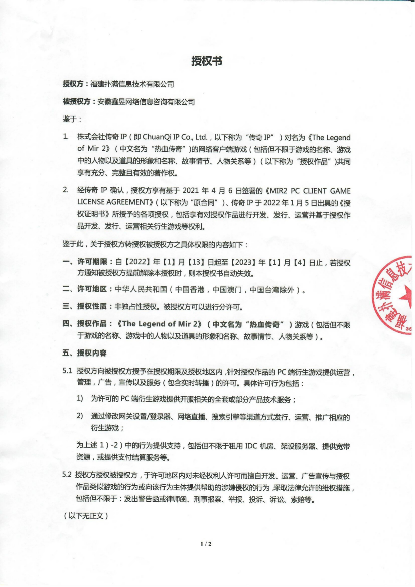 關(guān)于對《The Legend of Mir 2》(熱血傳奇) 衍生品游戲直播的嚴(yán)正聲明